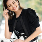 胸元にリボンモチーフをカットワーク刺繍したニット。半袖なので1枚で着ても、カーディガンと合わせても映えます。