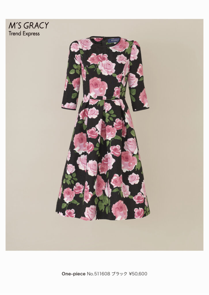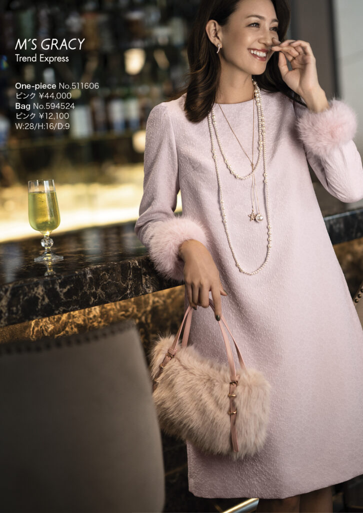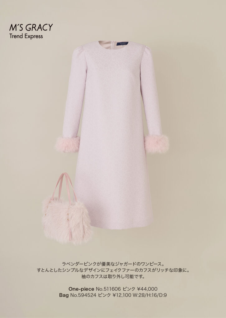 フェイクファーカフス付きジャガードドレス (511606)