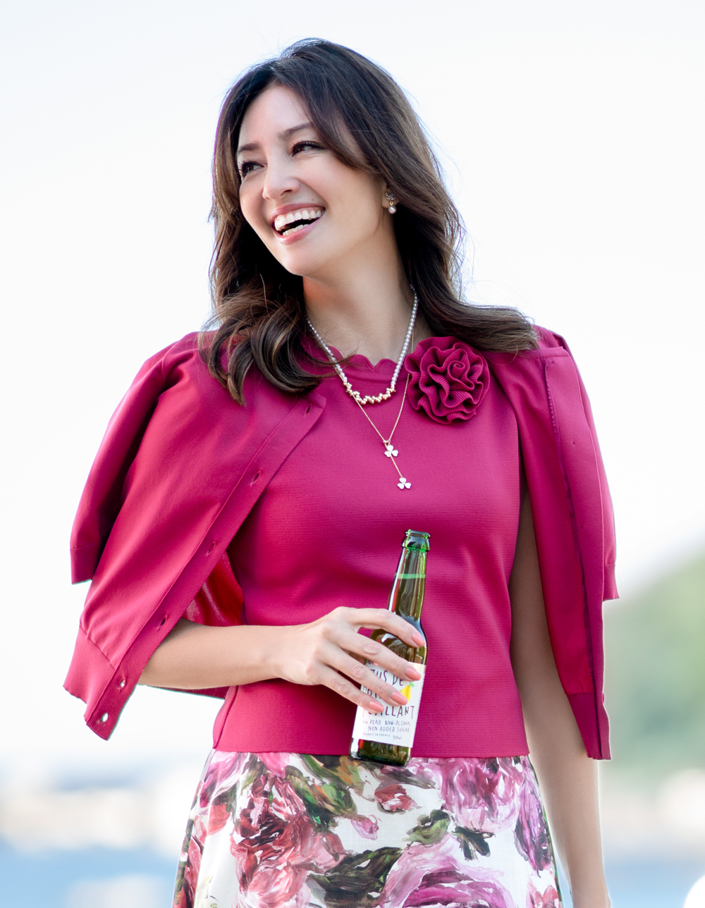 少し長めの半そでのカーディガン。軽くコンパクトで、冷房対策にも便利なアイテムです。